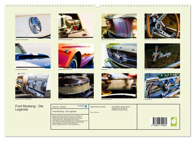 PREMIUM-LINIE - Brillanter Fotokalender mit 12 wunderschönen Motiven, Kunstdruck in Hochglanz in Museumsqualität.QUALITÄT - edle Materialien, stabile Rückwand mit 2 innovativen Einstecktaschen für eine optimale Präsentation an der Wand.NACHHALTIG - deutliche Abfallreduzierung durch bedarfsgerechte Einzelstückfertigung, umweltfreundliches FSC-zertifiziertes Papier, Produktion in Deutschland, klimabewusste Logistik.PERFEKTES GESCHENK - Kalender für Freunde und Familie, für Kinder und Erwachsene, jung und alt, zu Weihnachten, Geburtstag oder zwischendurch.Der Ford Mustang gilt als eine der Legenden im amerikanischen Fahrzeugbau. Dieser Kalender zeigt 12 Aufnahmen, die das Design des außergewöhnlichen Automobils kunstvoll in Szene setzen. von Autor(in): Peter Schürholz