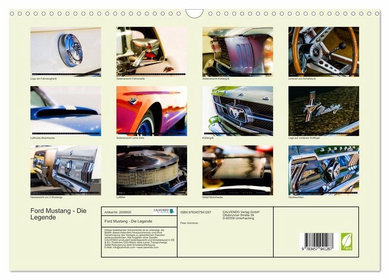 QUALITÄT - Hochwertiger Fotokalender mit 12 wunderschönen Motiven auf lichtbeständigem Bilderdruckpapier, robuste Spiralbindung mit Aufhängebügel.NACHHALTIG - deutliche Abfallreduzierung durch bedarfsgerechte Einzelstückfertigung, umweltfreundliches FSC-zertifiziertes Papier, Produktion in Deutschland, klimabewusste Logistik.PERFEKTES GESCHENK - Kalender für Freunde und Familie, für Kinder und Erwachsene, jung und alt, zu Weihnachten, Geburtstag oder zwischendurch.VIELFALT - Bildkalender in verschiedenen Formaten, z.B. DIN A5, DIN A4, DIN A3 sowie DIN A2. Ob Naturmotiv, Gemälde oder Fotos, ideal für ein persönliches Wohlfühlambiente.Der Ford Mustang gilt als eine der Legenden im amerikanischen Fahrzeugbau. Dieser Kalender zeigt 12 Aufnahmen, die das Design des außergewöhnlichen Automobils kunstvoll in Szene setzen. von Autor(in): Peter Schürholz