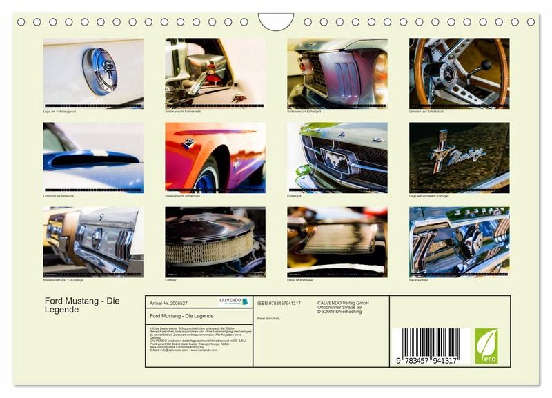 QUALITÄT - Hochwertiger Fotokalender mit 12 wunderschönen Motiven auf lichtbeständigem Bilderdruckpapier, robuste Spiralbindung mit Aufhängebügel.NACHHALTIG - deutliche Abfallreduzierung durch bedarfsgerechte Einzelstückfertigung, umweltfreundliches FSC-zertifiziertes Papier, Produktion in Deutschland, klimabewusste Logistik.PERFEKTES GESCHENK - Kalender für Freunde und Familie, für Kinder und Erwachsene, jung und alt, zu Weihnachten, Geburtstag oder zwischendurch.VIELFALT - Bildkalender in verschiedenen Formaten, z.B. DIN A5, DIN A4, DIN A3 sowie DIN A2. Ob Naturmotiv, Gemälde oder Fotos, ideal für ein persönliches Wohlfühlambiente.Der Ford Mustang gilt als eine der Legenden im amerikanischen Fahrzeugbau. Dieser Kalender zeigt 12 Aufnahmen, die das Design des außergewöhnlichen Automobils kunstvoll in Szene setzen. von Autor(in): Peter Schürholz