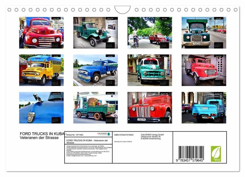 QUALITÄT - Hochwertiger Fotokalender mit 12 wunderschönen Motiven auf lichtbeständigem Bilderdruckpapier, robuste Spiralbindung mit Aufhängebügel.NACHHALTIG - deutliche Abfallreduzierung durch bedarfsgerechte Einzelstückfertigung, umweltfreundliches FSC-zertifiziertes Papier, Produktion in Deutschland, klimabewusste Logistik.PERFEKTES GESCHENK - Kalender für Freunde und Familie, für Kinder und Erwachsene, jung und alt, zu Weihnachten, Geburtstag oder zwischendurch.VIELFALT - Bildkalender in verschiedenen Formaten, z.B. DIN A5, DIN A4, DIN A3 sowie DIN A2. Ob Naturmotiv, Gemälde oder Fotos, ideal für ein persönliches Wohlfühlambiente.Verschiedene ältere LKW-Modelle von FORD in Kuba von Autor(in): Henning von Loewis of Menar