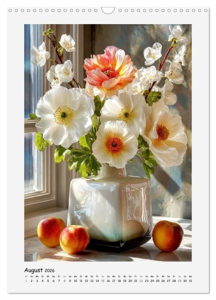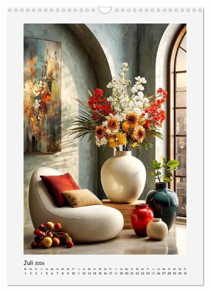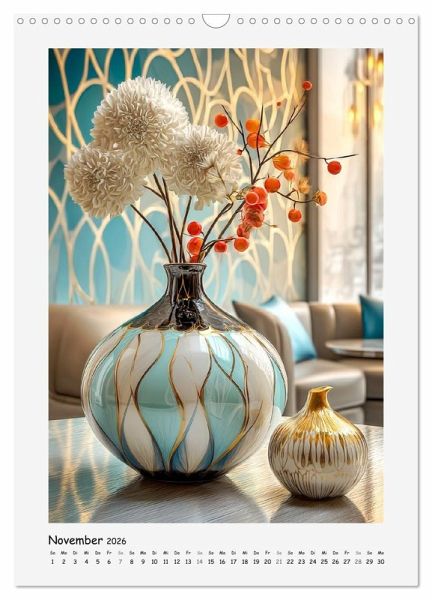Dieser Kalender zelebriert die kunstvolle Schönheitvon Vasen in harmonischen Wohnszenen. Jede Aufnahme wurde mit der Hilfe von KI erstellt und fängt die perfekte Balance zwischen Form, Farbe und Raum in einem Zusammenspiel von Design und Atmosphäre ein. Ob schlichte Bodenvasen oder fein gearbeitete Tischvasen - jede Vase erzählt ihre eigene Geschichte von Eleganz und Stil. Ein ästhetisches Statement für alle, die ihr Zuhause mit feiner Wohnkultur und Sinn für Details lieben.