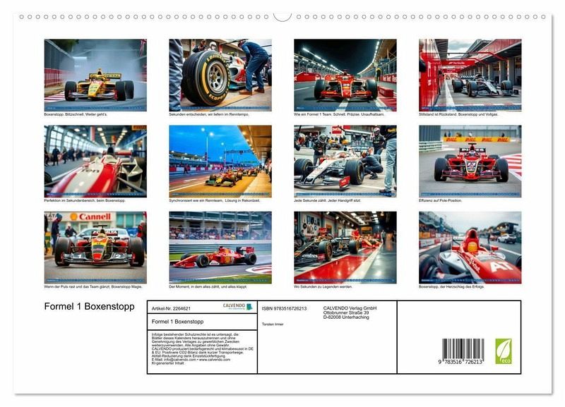PREMIUM-LINIE - Brillanter Fotokalender mit 12 wunderschönen Motiven, Kunstdruck in Hochglanz in Museumsqualität.QUALITÄT - edle Materialien, stabile Rückwand mit 2 innovativen Einstecktaschen für eine optimale Präsentation an der Wand.NACHHALTIG - deutliche Abfallreduzierung durch bedarfsgerechte Einzelstückfertigung, umweltfreundliches FSC-zertifiziertes Papier, Produktion in Deutschland, klimabewusste Logistik.PERFEKTES GESCHENK - Kalender für Freunde und Familie, für Kinder und Erwachsene, jung und alt, zu Weihnachten, Geburtstag oder zwischendurch.Hochleistung pur, in weniger als drei Sekunden werden Reifen gewechselt, Einstellungen angepasst und das Fahrzeug für die nächste Runde optimiert. von Autor(in): Torsten Irmer