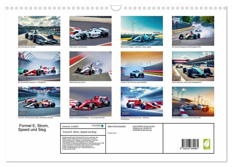 QUALITÄT - Hochwertiger Fotokalender mit 12 wunderschönen Motiven auf lichtbeständigem Bilderdruckpapier, robuste Spiralbindung mit Aufhängebügel.NACHHALTIG - deutliche Abfallreduzierung durch bedarfsgerechte Einzelstückfertigung, umweltfreundliches FSC-zertifiziertes Papier, Produktion in Deutschland, klimabewusste Logistik.PERFEKTES GESCHENK - Kalender für Freundeund Familie, für Kinder und Erwachsene, jung und alt, zu Weihnachten, Geburtstag oder zwischendurch.VIELFALT - Bildkalender in verschiedenen Formaten, z.B. DIN A5, DIN A4, DIN A3 sowie DIN A2. Ob Naturmotiv, Gemälde oder Fotos, ideal für ein persönliches Wohlfühlambiente.Wenn Strom zu Adrenalin wird und Speed zum Triumph. von Autor(in): Torsten Irmer