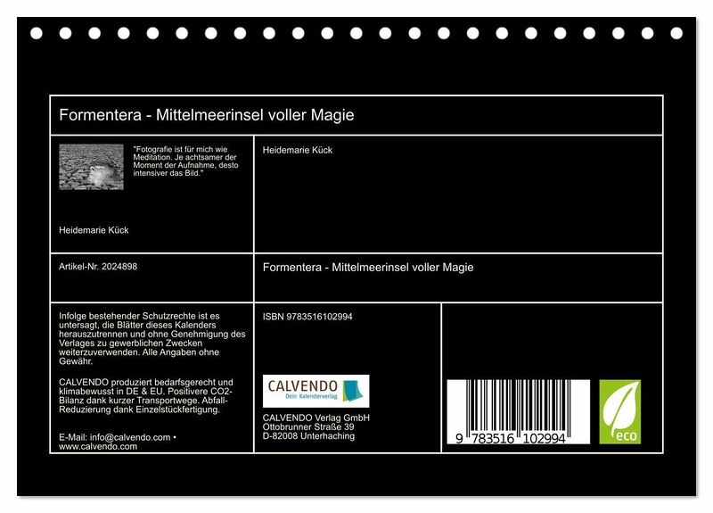 QUALITÄT - Hochwertiger Fotokalender mit 12 wunderschönen Motiven auf lichtbeständigem Bilderdruckpapier, robuste Spiralbindung.NACHHALTIG - deutliche Abfallreduzierung durch bedarfsgerechte Einzelstückfertigung, umweltfreundliches FSC-zertifiziertes Papier, Produktion in Deutschland, klimabewusste Logistik.PERFEKTES GESCHENK - Kalender für Freunde und Familie, für Kinder und Erwachsene, jung und alt, zu Weihnachten, Geburtstag oder zwischendurch.VIELFALT - Bildkalender in verschiedenen Formaten, z.B. DIN A5, DIN A4, DIN A3 sowie DIN A2. Ob Naturmotiv, Gemälde oder Fotos, ideal für ein persönliches Wohlfühlambiente.Zauberhafte Impressionen von der kleinsten Baleareninsel von Autor(in): Heidemarie Kück