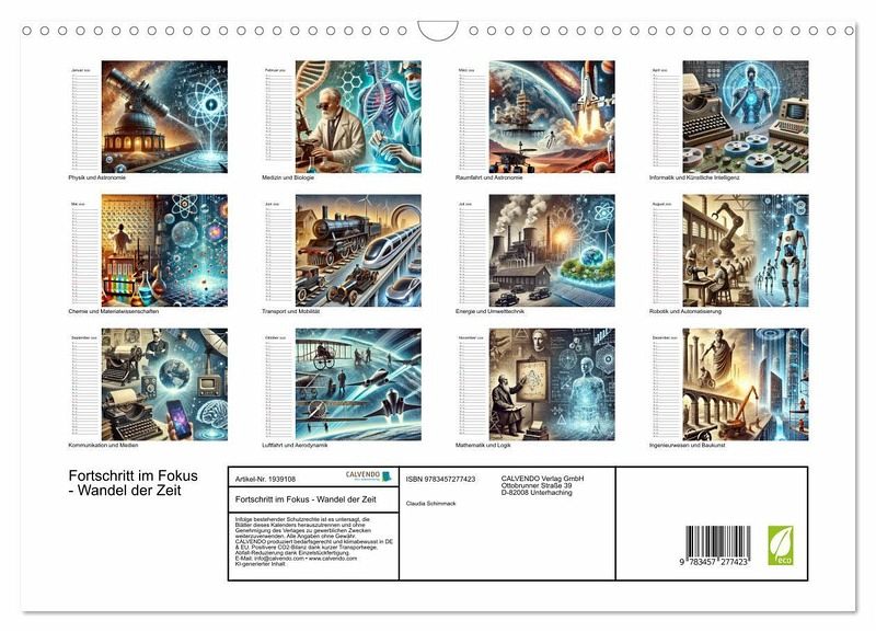 Tauche ein in ein Jahr voller bahnbrechender Entdeckungen und revolutionärer Erfindungen. Dieser KI generierte Kalender nimmt dich mit auf eine faszinierende Reise durch die Welt der Wissenschaft und Technik. Jeder Monat erwartet dich ein neues Thema mit spannenden Meilensteinen und innovativen Erfindungen. Entdecke, wie große Denker die Welt verändert haben und welche Technologien die Zukunft prägen werden. Der perfekte Kalender für Wissbegierige, Technikbegeisterte und alle, die sich von Innovationen inspirieren lassen.