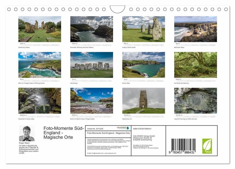 QUALITÄT - Hochwertiger Fotokalender mit 12 wunderschönen Motiven auf lichtbeständigem Bilderdruckpapier, robuste Spiralbindung mit Aufhängebügel.NACHHALTIG - deutliche Abfallreduzierung durch bedarfsgerechte Einzelstückfertigung, umweltfreundliches FSC-zertifiziertes Papier, Produktion in Deutschland, klimabewusste Logistik.PERFEKTES GESCHENK - Kalender für Freunde und Familie, für Kinder und Erwachsene, jung und alt, zu Weihnachten, Geburtstag oder zwischendurch.VIELFALT - Bildkalender in verschiedenen Formaten, z.B. DIN A5, DIN A4, DIN A3 sowie DIN A2. Ob Naturmotiv, Gemälde oder Fotos, ideal für ein persönliches Wohlfühlambiente.Eine magische Reise von Stonehenge über Glastonbury an die Küste von Cornwall von Autor(in): Roger Steen