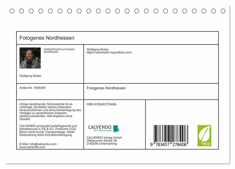 QUALITÄT - Hochwertiger Fotokalender mit 12 wunderschönen Motiven auf lichtbeständigem Bilderdruckpapier, robuste Spiralbindung.NACHHALTIG - deutliche Abfallreduzierung durch bedarfsgerechte Einzelstückfertigung, umweltfreundliches FSC-zertifiziertes Papier, Produktion in Deutschland, klimabewusste Logistik.PERFEKTES GESCHENK - Kalender für Freunde und Familie, für Kinder und Erwachsene, jung und alt, zu Weihnachten, Geburtstag oder zwischendurch.VIELFALT - Bildkalender in verschiedenen Formaten, z.B. DIN A5, DIN A4, DIN A3 sowie DIN A2. Ob Naturmotiv, Gemälde oder Fotos, ideal für ein persönliches Wohlfühlambiente.Nordhessen von seiner schönsten Seite von Autor(in): Wolfgang Nickel