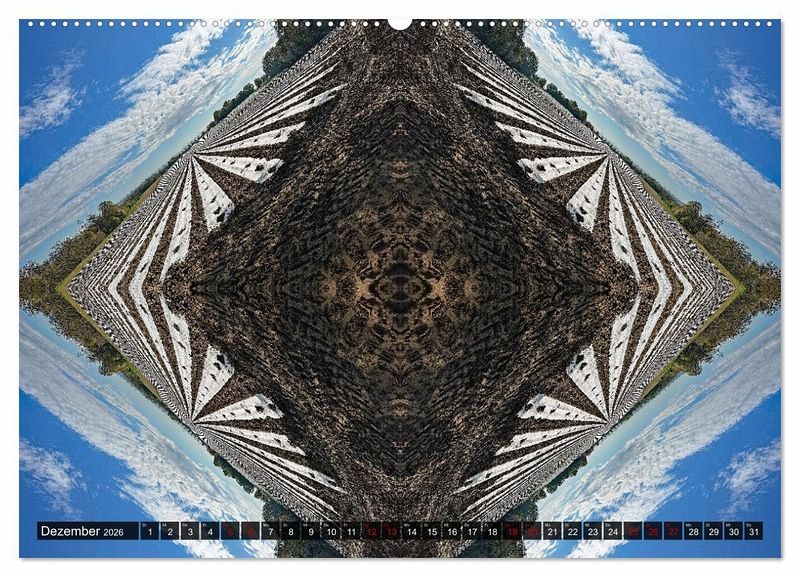 Mit diesem Kalender erhalten Sie 13 mal Fotokunst für Ihre Wohnung. Die eindrucksvollen Motive entstanden einfach durch Spiegelungen und sind erstaunliche Eyecatcher. Jedes Bild enthält vier mal dasselbe Motiv nur jeweils horizontal und vertikal gespiegelt.