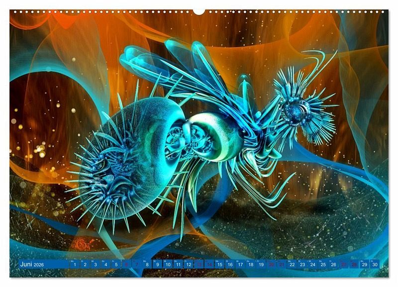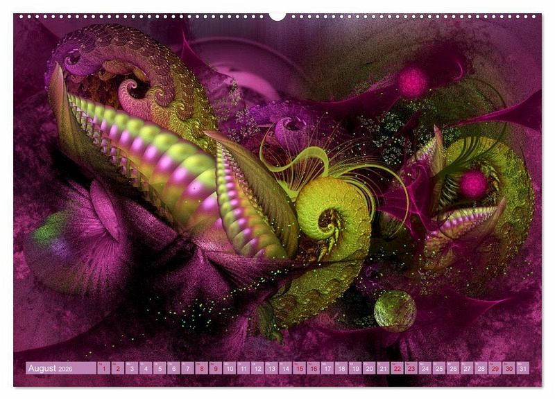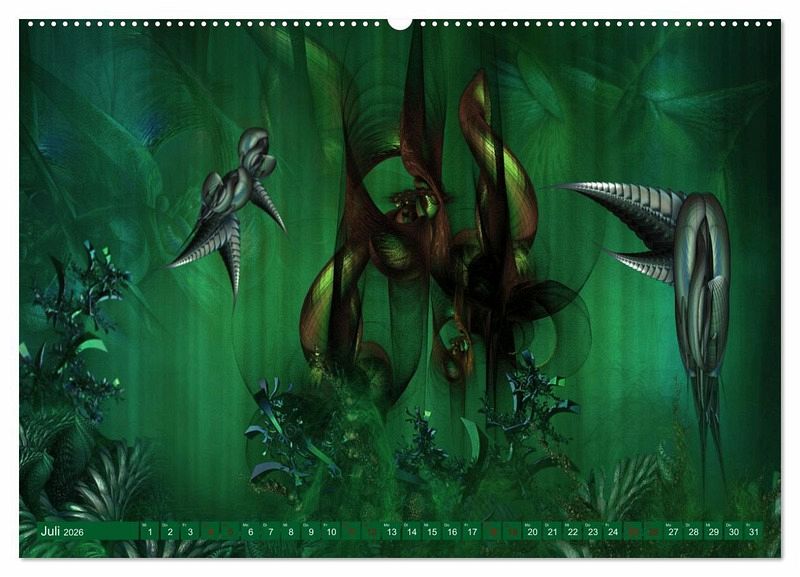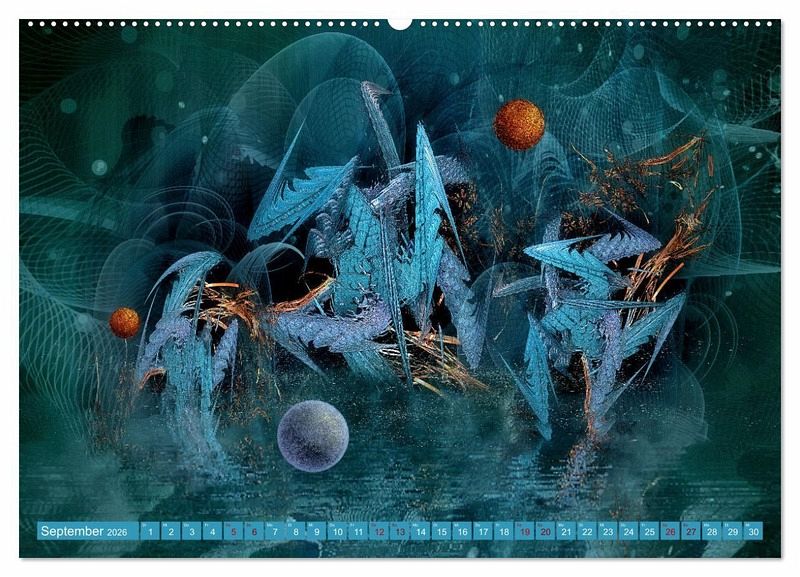 Digitale Malerei kombiniert mit dreidimensionalen Fraktalen. Zwölf atemberaubende abstrakte Landschaften voller Eleganz und Leuchtkraft.