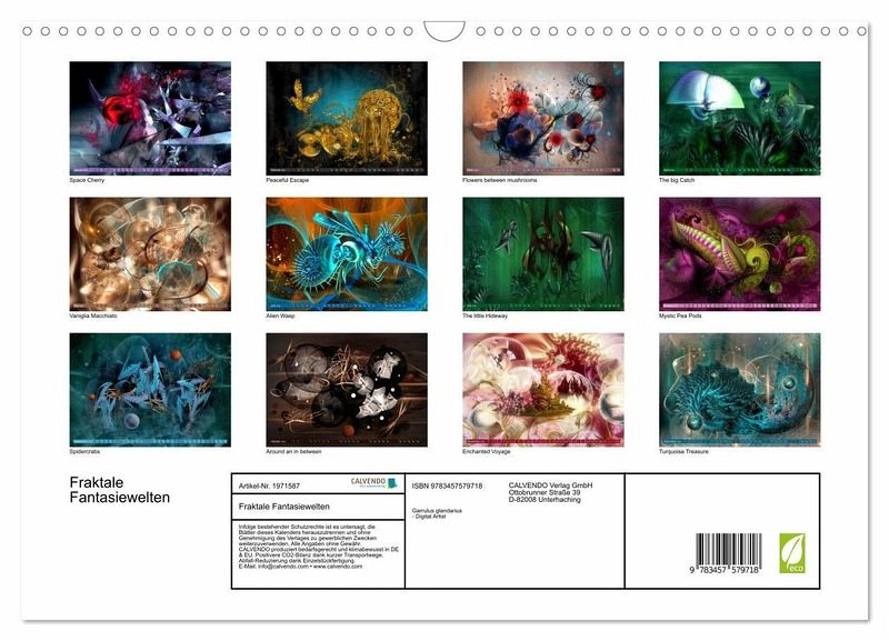 Digitale Malerei kombiniert mit dreidimensionalen Fraktalen. Zwölf atemberaubende abstrakte Landschaften voller Eleganz und Leuchtkraft.