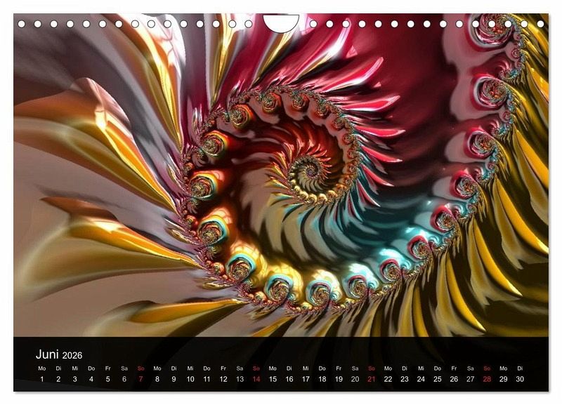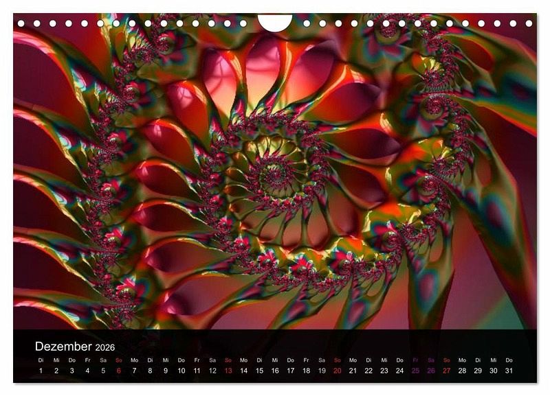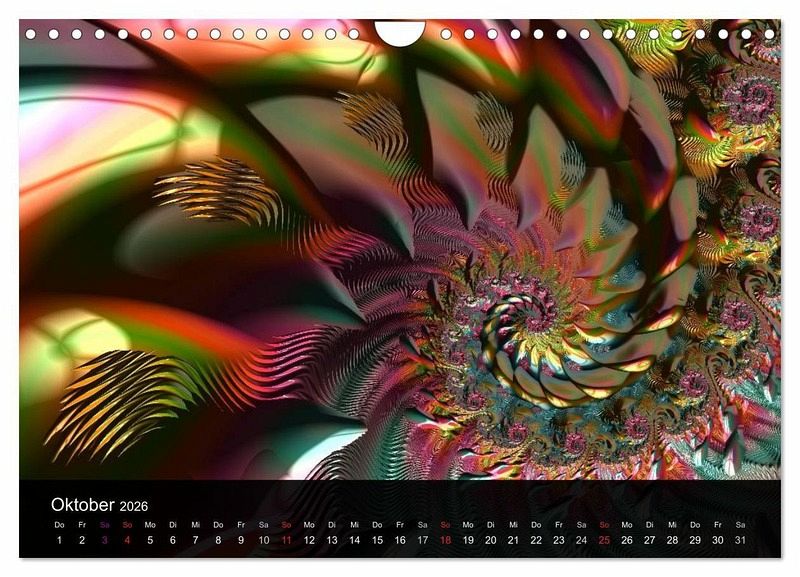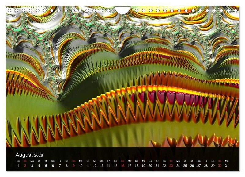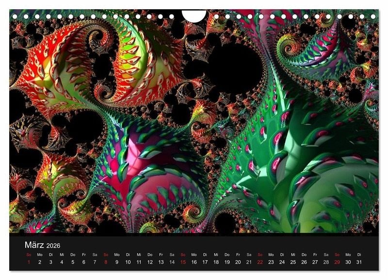 Grundlage für die Werke dieses Kalenders bilden die von Benoit Mandelbrot entdeckten mathematischen Formeln, deren geometrische Darstellungen heute unter dem Begriff "Fraktale" bekannt sind. Eine ihrer Eigenschaften ist die sogenannte "Selbstähnlichkeit" - Strukturelemente wiederholen sich oft bis ins kleinste Detail und bis ins Unendliche, wobei es allerdings in der Detailgenauigkeit Abweichungen gibt. Hierdurch ergibt sich ein Zusammenhang mit der sogenannten "Chaostheorie". Fraktale Formgestaltungen findet man vielfach in der Natur.