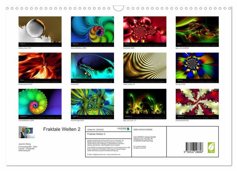 QUALITÄT - Hochwertiger Fotokalender mit 12 wunderschönen Motiven auf lichtbeständigem Bilderdruckpapier, robuste Spiralbindung mit Aufhängebügel.NACHHALTIG - deutliche Abfallreduzierung durch bedarfsgerechte Einzelstückfertigung, umweltfreundliches FSC-zertifiziertes Papier, Produktion in Deutschland, klimabewusste Logistik.PERFEKTES GESCHENK - Kalender für Freunde und Familie, für Kinder und Erwachsene, jung und alt, zu Weihnachten, Geburtstag oder zwischendurch.VIELFALT - Bildkalender in verschiedenen Formaten, z.B. DIN A5, DIN A4, DIN A3 sowie DIN A2. Ob Naturmotiv, Gemälde oder Fotos, ideal für ein persönliches Wohlfühlambiente.Berechnete Bilder von faszinierender Vielfalt von Autor(in): Joachim Barig