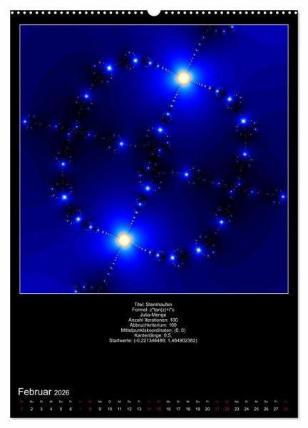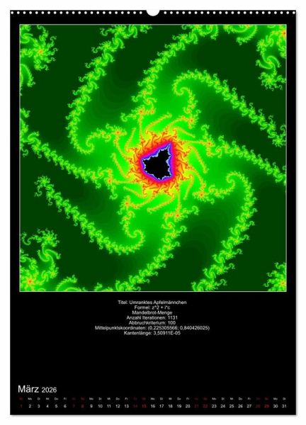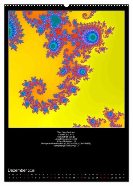 Man kann sich einfach nur an den bizarren, bunten Fraktalbildern erfreuen und versuchen, vertraute Formen darin zu entdecken - oder man kann sie auch selbst nachrechnen (oder abwandeln), indem man die angegebenen Daten und ein selbstgeschriebenes Programm verwendet. Der Kalender für alle Mathe-Freaks! Dieser qualitativ hochwertige Kalender gehört zur exklusiven CALVENDO Gold-Edition.