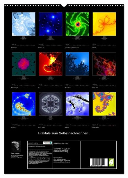 PREMIUM-LINIE - Brillanter Fotokalender mit 12 wunderschönen Motiven, Kunstdruck in Hochglanz in Museumsqualität.QUALITÄT - edle Materialien, stabile Rückwand mit 2 innovativen Einstecktaschen für eine optimale Präsentation an der Wand.NACHHALTIG - deutliche Abfallreduzierung durch bedarfsgerechte Einzelstückfertigung, umweltfreundliches FSC-zertifiziertes Papier, Produktion in Deutschland, klimabewusste Logistik.PERFEKTES GESCHENK - Kalender für Freunde und Familie, für Kinder und Erwachsene, jung und alt, zu Weihnachten, Geburtstag oder zwischendurch.Bizarre, bunte Fraktalbilder mit technischen Daten von Autor(in): Klaus Rohwer