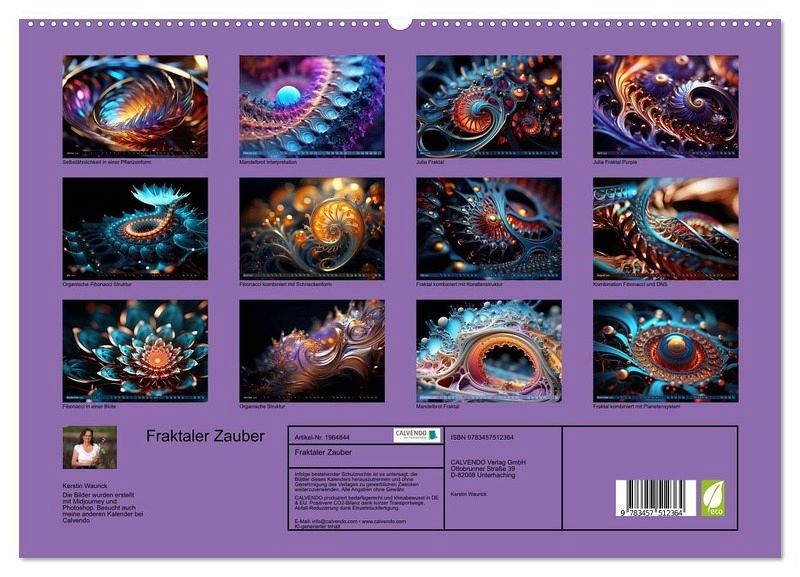 Die Berechnung von Fraktalen war vermutlich eins der Dinge, die Programmierer als erstes von Computern verlangt haben, nachdem sie Grafiken darstellen konnten. Weil sie einfach schön sind. Mit KI ist es möglich, die klassischen Fraktale mit neuen Formen kombinieren zu lassen und heraus kommt Ästhetik und Schönheit in Farbe und Form. Dieser Kalender vereint zwölf Bilder unterschiedlicher Kombinationen, die vielleicht nicht originalgetreu den Julia und Mandelbrot Fraktalen entsprechen, aber dafür die Schönheit zeigen, die in trockener Mathematik verborgen ist.