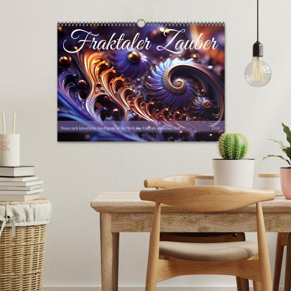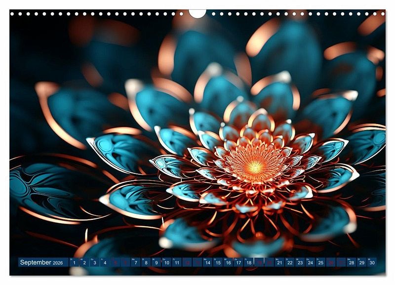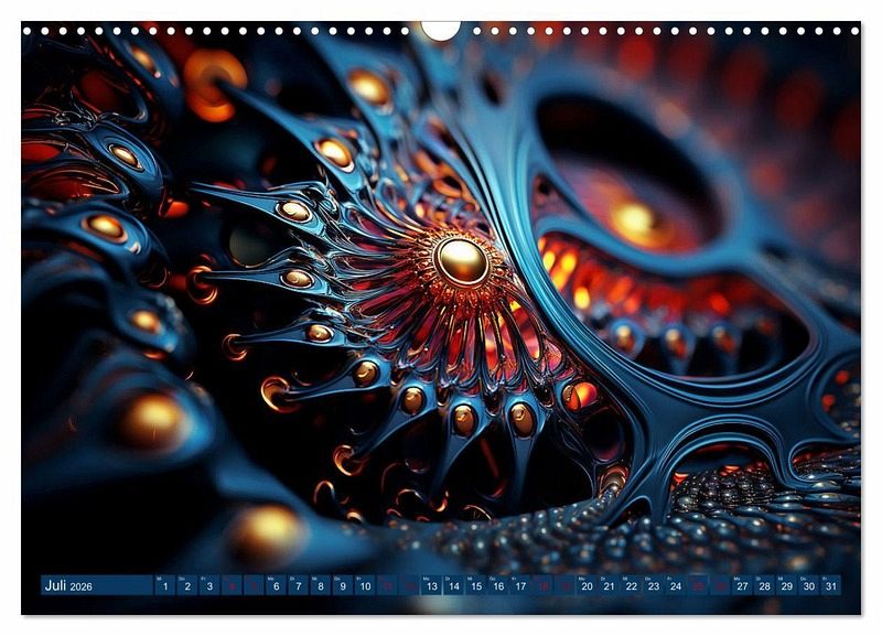 Die Berechnung von Fraktalen war vermutlich eins der Dinge, die Programmierer als erstes von Computern verlangt haben, nachdem sie Grafiken darstellen konnten. Weil sie einfach schön sind. Mit KI ist es möglich, die klassischen Fraktale mit neuen Formen kombinieren zu lassen und heraus kommt Ästhetik und Schönheit in Farbe und Form. Dieser Kalender vereint zwölf Bilder unterschiedlicher Kombinationen, die vielleicht nicht originalgetreu den Julia und Mandelbrot Fraktalen entsprechen, aber dafür die Schönheit zeigen, die in trockener Mathematik verborgen ist.