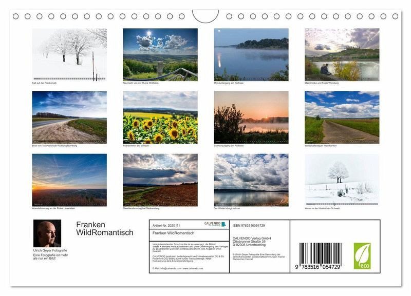 QUALITÄT - Hochwertiger Fotokalender mit 12 wunderschönen Motiven auf lichtbeständigem Bilderdruckpapier, robuste Spiralbindung mit Aufhängebügel.NACHHALTIG - deutliche Abfallreduzierung durch bedarfsgerechte Einzelstückfertigung, umweltfreundliches FSC-zertifiziertes Papier, Produktion in Deutschland, klimabewusste Logistik.PERFEKTES GESCHENK - Kalender für Freunde und Familie, für Kinder und Erwachsene, jung und alt, zu Weihnachten, Geburtstag oder zwischendurch.VIELFALT - Bildkalender in verschiedenen Formaten, z.B. DIN A5, DIN A4, DIN A3 sowie DIN A2. Ob Naturmotiv, Gemälde oder Fotos, ideal für ein persönliches Wohlfühlambiente.Eine Sammlung der wunderschönen Stimmungen der fränkischen Landschaften. von Autor(in): Ulrich Geyer