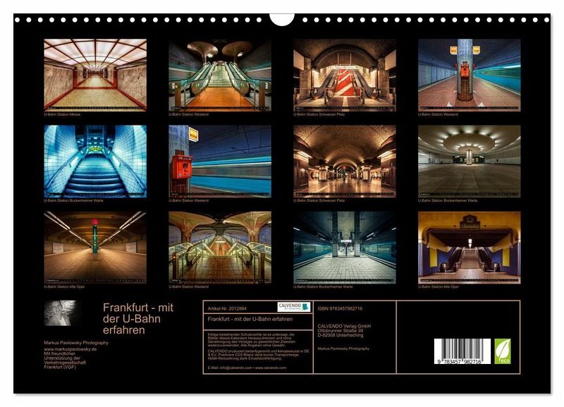 Der Fotograf Markus Pavlowsky zeigt mit diesem Wandkalender Frankfurt einmal anders. Auch in der "Unterwelt" Frankfurts, der U-Bahn und seinen schönen, architektonisch wertvollen Stationen, lassen sich wundervolle Dinge entdecken. Lassen Sie sich inspirieren.