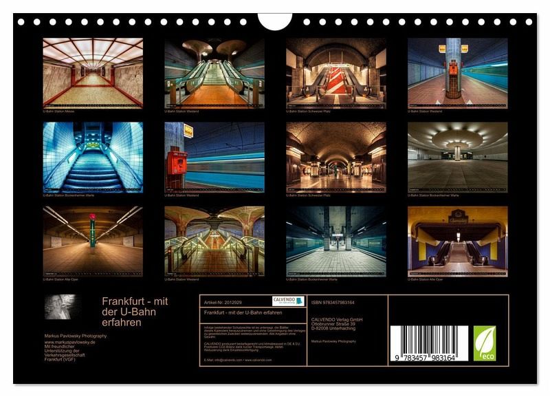 Der Fotograf Markus Pavlowsky zeigt mit diesem Wandkalender Frankfurt einmal anders. Auch in der "Unterwelt" Frankfurts, der U-Bahn und seinen schönen, architektonisch wertvollen Stationen, lassen sich wundervolle Dinge entdecken. Lassen Sie sich inspirieren.