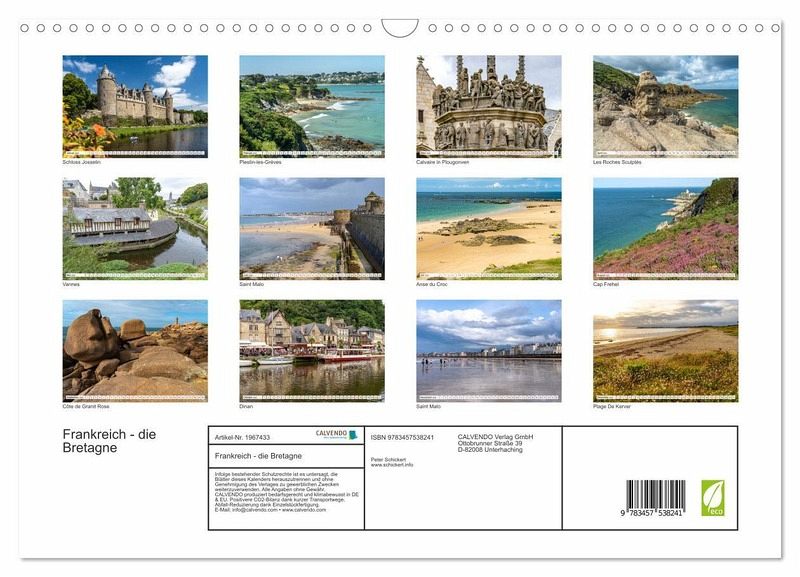 Erkunden Sie die malerische Schönheit der Bretagne mit diesem faszinierenden Kalender vom renpommierten Reisefotografen Peter Schickert. Atemberaubende Küstenlandschaft, kulturelle Highlights und idyllische Dörfer zeigen hier den Zauber dieser einzigartigen Region Frankreichs.