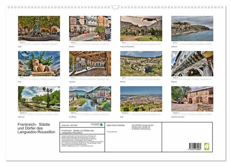 Die Städte und Dörfer des Languedoc-Roussillon - jeder Ort hat seine eigenen Besonderheiten. Sind es bei dem einen die Gebäude, so ist es bei einem anderen die Lage. Aber sei es nun die Lage ober die Baukunst, jedes Dorf und jede Stadt hat ihren Reiz. Dieser Kalender möchte dazu anregen die Dörfer und Städte des Languedoc einmal persönlich kennen zu lernen.