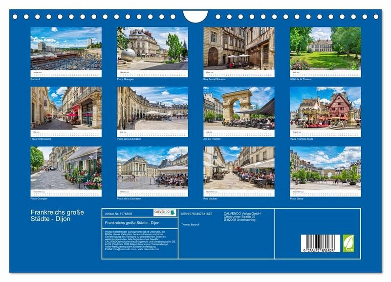 QUALITÄT - Hochwertiger Fotokalender mit 12 wunderschönen Motiven auf lichtbeständigem Bilderdruckpapier, robuste Spiralbindung mit Aufhängebügel.NACHHALTIG - deutliche Abfallreduzierung durch bedarfsgerechte Einzelstückfertigung, umweltfreundliches FSC-zertifiziertes Papier, Produktion in Deutschland, klimabewusste Logistik.PERFEKTES GESCHENK - Kalender für Freunde und Familie, für Kinder und Erwachsene, jung und alt, zu Weihnachten, Geburtstag oder zwischendurch.VIELFALT - Bildkalender in verschiedenen Formaten, z.B. DIN A5, DIN A4, DIN A3 sowie DIN A2. Ob Naturmotiv, Gemälde oder Fotos, ideal für ein persönliches Wohlfühlambiente.Spaziergang durch die wunderschöne Hauptstadt des Burgund von Autor(in): Thomas Bartruff