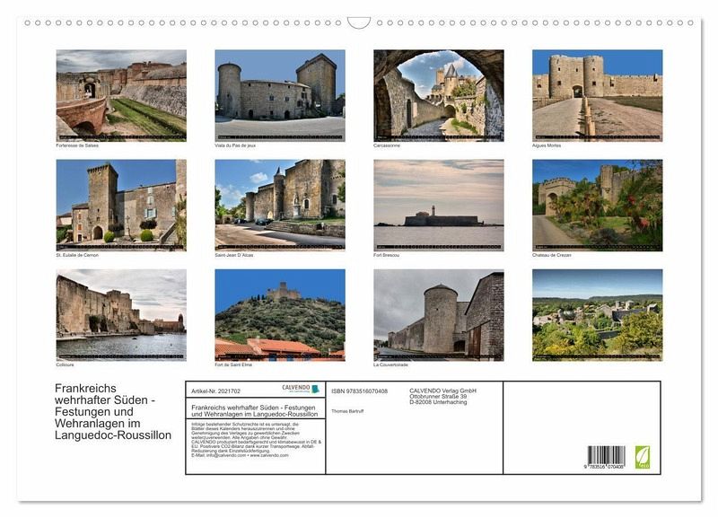 Noch heute zeugen zahlreiche Wehranlagen im Süden Frankreichs von einer gefährlichen Zeit. Viele Festungen und Stadtmauern haben bis in die heutige Zeit allem getrotzt und können von staunenden Touristen bewundert werden. Dieser Kalender zeigt eine kleine Auswahl dieser Befestigungen und möchte dazu anregen die Region Languedoc-Roussillon selbst zu erkunden.