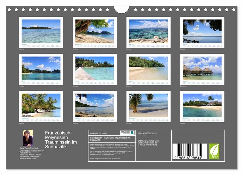 QUALITÄT - Hochwertiger Fotokalender mit 12 wunderschönen Motiven auf lichtbeständigem Bilderdruckpapier, robuste Spiralbindung mit Aufhängebügel.NACHHALTIG - deutliche Abfallreduzierung durch bedarfsgerechte Einzelstückfertigung, umweltfreundliches FSC-zertifiziertes Papier, Produktion in Deutschland, klimabewusste Logistik.PERFEKTES GESCHENK - Kalender für Freunde und Familie, für Kinder und Erwachsene, jung und alt, zu Weihnachten, Geburtstag oder zwischendurch.VIELFALT - Bildkalender in verschiedenen Formaten, z.B. DIN A5, DIN A4, DIN A3 sowie DIN A2. Ob Naturmotiv, Gemälde oder Fotos, ideal für ein persönliches Wohlfühlambiente.Viel Meer, Lagunen, Korallenriffe und ein bisschen Land - Insel-Hopping in der Südsee von Autor(in): Jana Thiem-Eberitsch