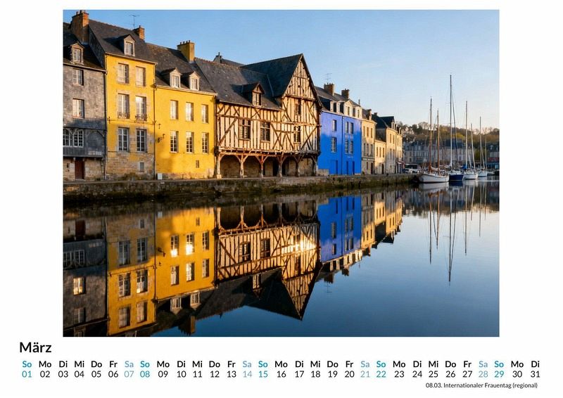 Der Ruf des Ozeans und das wechselhafte Licht über steilen Klippen prägen die Küsten Nordfrankreichs. Der Kalender "Französische Küstenlandschaften" fängt diese besondere Stimmung in zwölf ausgewählten Szenen ein und bringt den maritimen Charme der Normandie und der Bretagne nach Hause. Dieser Kalender ist ideal: * Für Liebhaber der rauen Schönheit nordfranzösischer Küsten. * Für Menschen, die eine ruhige und stilvolle Wanddekoration suchen. * Für alle, die sich nach dem Meer und der Weite des Horizonts sehnen. Jeder Monat enthüllt eine neue Facette dieser Regionen. Von einsamen Leuchttürmen, die dem Sturm trotzen, über verträumte Fischerdörfer bis hin zu weiten Sandstränden bei Ebbe. Die Motive, die in ihrer Anmutung an Fotografien erinnern, wurden durch einen kreativen Prozess erschaffen, der auf der Analyse unzähliger visueller Daten basiert und diese zu neuen, einzigartigen Kompositionen zusammenfügt. So entsteht eine idealisierte Vision der französischen Küste. Beim Kauf dieses Kalenders kann man Folgendes erwarten: * Zwölf sorgfältig komponierte Monatsmotive. * Ein übersichtliches Kalendarium für die persönliche Jahresplanung. * Eine visuelle Reise durch die Jahreszeiten an der französischen Atlantikküste. Dieser Kalender ist eine Hommage an die zeitlose Anziehungskraft des Meeres und die charakteristischen Landschaften der Normandie und Bretagne. Ein Blick in die Monatsansichten offenbart die Vielfalt der Motive und lädt dazu ein, das ganze Jahr über in Erinnerungen zu schwelgen oder neue Reisepläne zu schmieden.