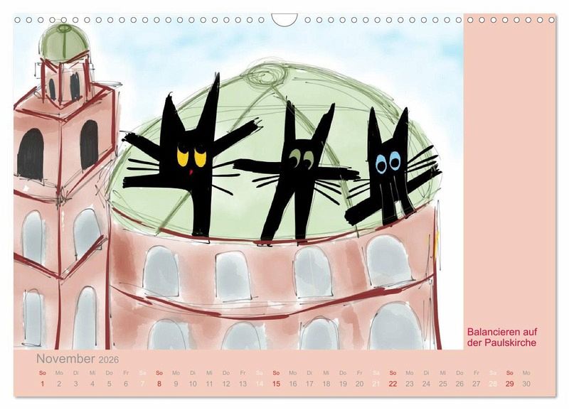 Dieser Jahreskalender begleitet mit viel Humor drei schwarze Katzen bei ihren atemberaubenden Abenteuern durch Frankfurt am Main. Oooooh, was die sich so alles trauen! Schauen Sie sich um, vielleicht treffen Sie die Drei bei einem neuen Abenteuer oder Frau Kami Katze in einem Café beim Zeichnen in Ihrer Stadt.
