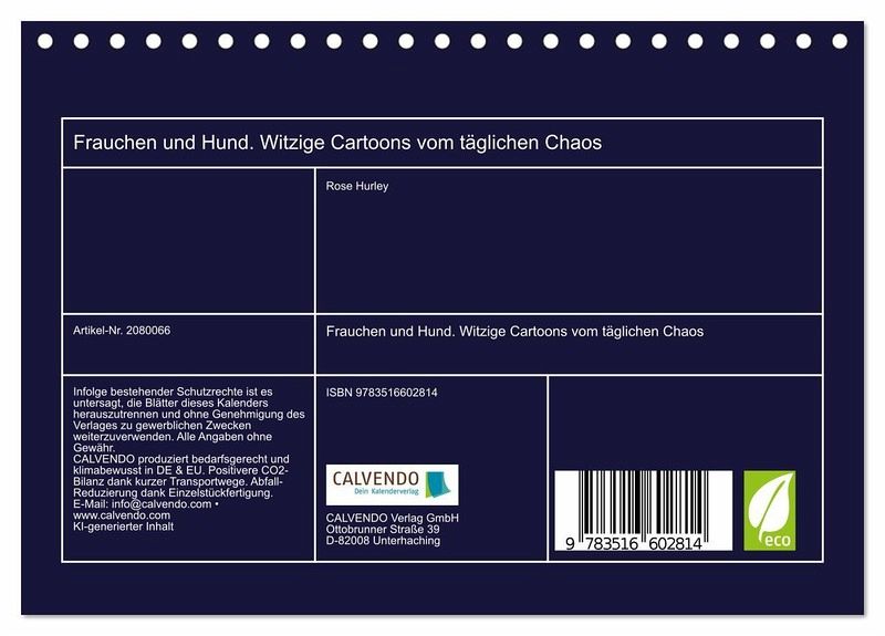 QUALITÄT - Hochwertiger Fotokalender mit 12 wunderschönen Motiven auf lichtbeständigem Bilderdruckpapier, robuste Spiralbindung.NACHHALTIG - deutliche Abfallreduzierung durch bedarfsgerechte Einzelstückfertigung, umweltfreundliches FSC-zertifiziertes Papier, Produktion in Deutschland, klimabewusste Logistik.PERFEKTES GESCHENK - Kalender für Freunde und Familie, für Kinder und Erwachsene, jung und alt, zu Weihnachten, Geburtstag oder zwischendurch.VIELFALT - Bildkalender in verschiedenen Formaten, z.B. DIN A5, DIN A4, DIN A3 sowie DIN A2. Ob Naturmotiv, Gemälde oder Fotos, ideal für ein persönliches Wohlfühlambiente.Lustige Cartoons vom bunten Leben eines Frauchens mit Hund von Autor(in): Rose Hurley