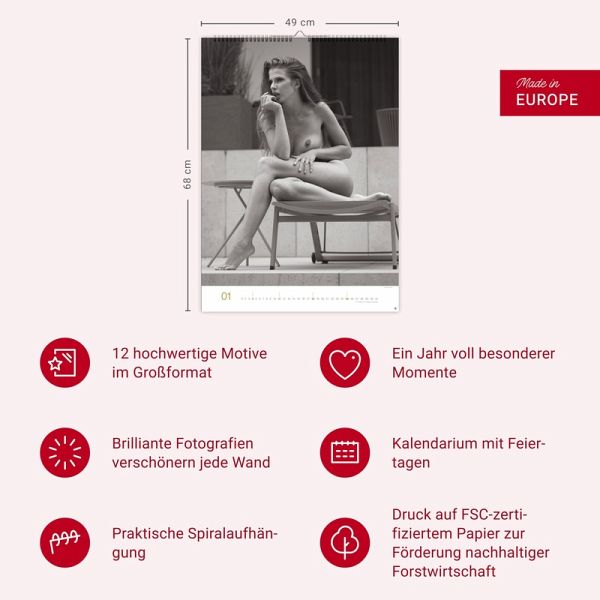 - Stilvolle Erotik und fantastische Kurven: Sexy Frauen-Porträts im großen Jahres-Wandkalender 2026- Aktfotografie at it's best: Monat für Monat verführerische Aufnahmen und hochwertige erotische Bilder - Weibliche Topmodels im aufregenden Großformat: Wandkalender XXL (49 x 68 cm) mit Fotokunst in edlem Schwarz-Weiß- Da schaut man gerne nach dem Datum: Frauen-Kalender als frecher Blickfang für jede Wand- Die schönsten Motive, die besten Fotografen: Kalender-Kunst aus dem Hause Heye im Athesia Kalenderverlag