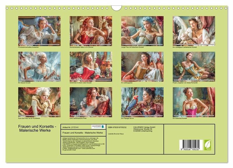 QUALITÄT - Hochwertiger Fotokalender mit 12 wunderschönen Motiven auf lichtbeständigem Bilderdruckpapier, robuste Spiralbindung mit Aufhängebügel.NACHHALTIG - deutliche Abfallreduzierung durch bedarfsgerechte Einzelstückfertigung, umweltfreundliches FSC-zertifiziertes Papier, Produktion in Deutschland, klimabewusste Logistik.PERFEKTES GESCHENK - Kalender für Freunde und Familie, für Kinder und Erwachsene, jung und alt, zu Weihnachten, Geburtstag oder zwischendurch.VIELFALT - Bildkalender in verschiedenen Formaten, z.B. DIN A5, DIN A4, DIN A3 sowie DIN A2. Ob Naturmotiv, Gemälde oder Fotos, ideal für ein persönliches Wohlfühlambiente.Verführerische Korsetts von Autor(in): Liselotte Brunner-Klaus