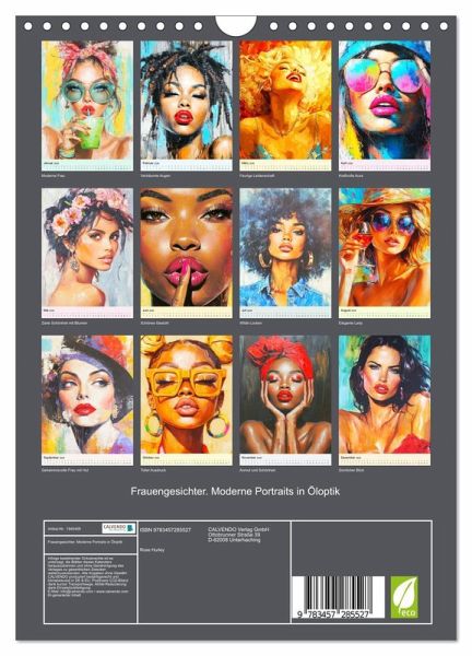 QUALITÄT - Hochwertiger Fotokalender mit 12 wunderschönen Motiven auf lichtbeständigem Bilderdruckpapier, robuste Spiralbindung mit Aufhängebügel.NACHHALTIG - deutliche Abfallreduzierung durch bedarfsgerechte Einzelstückfertigung, umweltfreundliches FSC-zertifiziertes Papier, Produktion in Deutschland, klimabewusste Logistik.PERFEKTES GESCHENK - Kalender für Freunde und Familie, für Kinder und Erwachsene, jung und alt, zu Weihnachten, Geburtstag oder zwischendurch.VIELFALT - Bildkalender in verschiedenen Formaten, z.B. DIN A5, DIN A4, DIN A3 sowie DIN A2. Ob Naturmotiv, Gemälde oder Fotos, ideal für ein persönliches Wohlfühlambiente.Ein kunstvoller Kalender mit ausdrucksstarken und modernen Frauenportraits im Stil der Ölmalerei. von Autor(in): Rose Hurley
