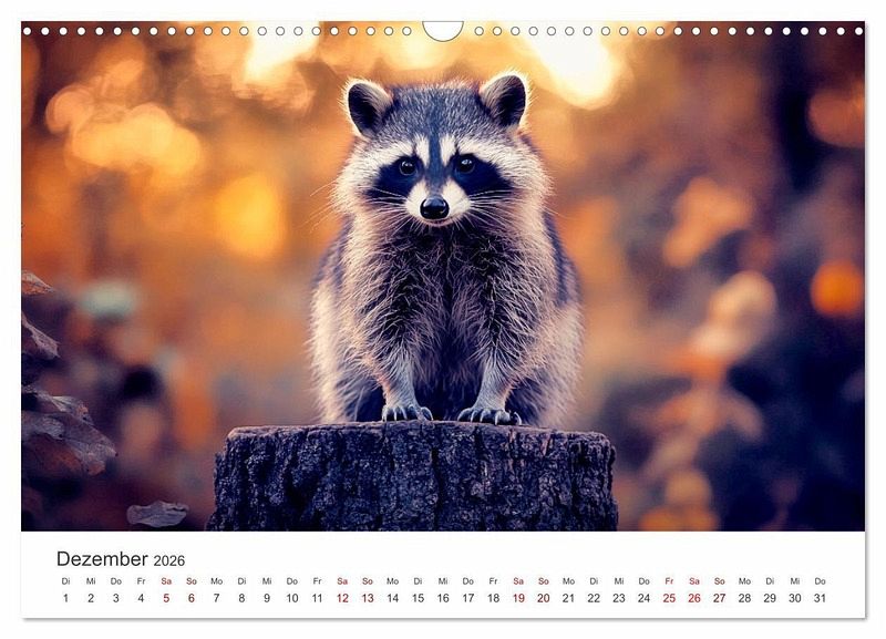 Freche Streifzüge durchs Unterholz, entspannte Momente im Moosbett und waghalsige Kletterpartien in den Baumkronen - dieser KI-generierte Kalender zeigt die flauschigen Räuber in ihrem natürlichen Lebensraum. Mit charmanten und witzigen Bildunterschriften begleitet er dich Monat für Monat durch die geheime Welt der Waschbären. Ein perfektes Geschenk für Naturfreunde und alle, die die kleinen Banditen ins Herz geschlossen haben.