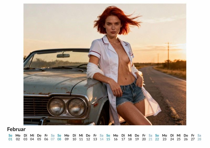 Hinter den verschlossenen Türen der Krankenstation entfaltet sich ein Szenario, das die üblichen Vorstellungen von Pflege auf den Kopf stellt. Der Wandkalender "Freche Krankenschwestern" fängt genau diese Momente ein und begleitet durch ein Jahr voller unerwarteter Anblicke. Dieser Kalender ist optimal für Liebhaber klassischer Pin-up-Ästhetik in einem modernen Gewand. Er eignet sich als Geschenk für Freunde mit einem besonderen Sinn für Humor. Sammler von thematischen Fotokalendern finden hier eine außergewöhnliche Ergänzung. Jeder Monat präsentiert eine neue Szene, in der die Grenzen zwischen professioneller Uniform und verführerischer Kleidung verschwimmen. Die Darstellerinnen posieren in extrem kurzen, aufgeknöpften Uniformkleidern, kombiniert mit Netzstrümpfen und Strapsen. Ihre Blicke sind direkt und herausfordernd. Diese fesselnden Kompositionen wurden durch den Einsatz modernster digitaler Bildsynthese erschaffen und zeigen eine fantasievolle Interpretation des Themas. Der Käufer erhält einen Wandkalender mit zwölf Monatsmotiven und einem Deckblatt. Jedes Kalenderblatt bietet ein übersichtliches Kalendarium für die Planung des Jahres. Das Format ist praktisch für die Anbringung an jeder Wand. Zusammenfassend bietet der Kalender eine provokante und stilsichere Reise durch die Monate. Es ist eine Einladung, die Motive zu entdecken und sich ein Jahr lang von diesen unkonventionellen Darstellungen begleiten zu lassen. Ein Blick auf die Monatsblätter lohnt sich.