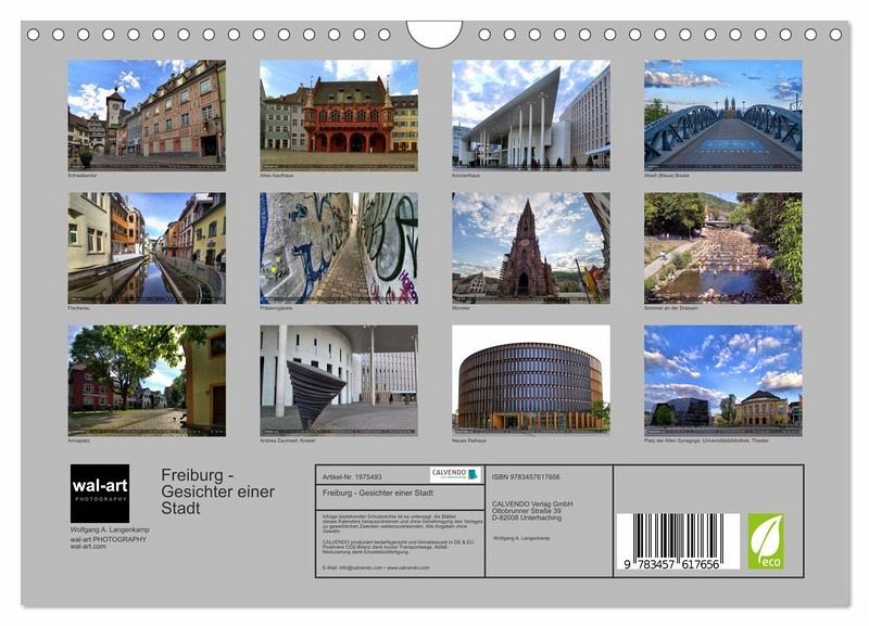 QUALITÄT - Hochwertiger Fotokalender mit 12 wunderschönen Motiven auf lichtbeständigem Bilderdruckpapier, robuste Spiralbindung mit Aufhängebügel.NACHHALTIG - deutliche Abfallreduzierung durch bedarfsgerechte Einzelstückfertigung, umweltfreundliches FSC-zertifiziertes Papier, Produktion in Deutschland, klimabewusste Logistik.PERFEKTES GESCHENK - Kalender für Freunde und Familie, für Kinder und Erwachsene, jung und alt, zu Weihnachten, Geburtstag oder zwischendurch.VIELFALT - Bildkalender in verschiedenen Formaten, z.B. DIN A5, DIN A4, DIN A3 sowie DIN A2. Ob Naturmotiv, Gemälde oder Fotos, ideal für ein persönliches Wohlfühlambiente.Charakteristische Stadtansichten von Freiburg im Breisgau aus Geschichte und Gegenwart. von Autor(in): Wolfgang A. Langenkamp