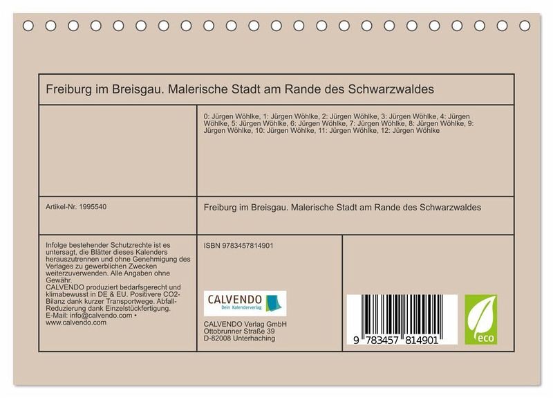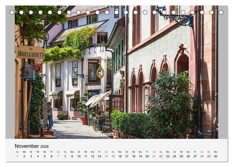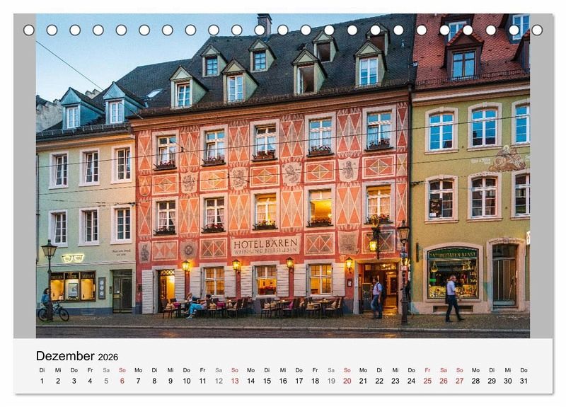 Der Kalender zeigt romantische Motive der zauberhaften Stadt Freiburg. Die historische Altstadt Freiburgs zeichnet sich durch ihre vielen kleinen Gässchen und Straßen aus, durch die man als Fußgänger gemütlich spazieren kann. Bei einem Bummel durch die historische Altstadt wurden wunderschöne Motive aufgenommen von verschwiegenen Gassen und beeindruckenden Bauten der historischen Altstadt. Wahrzeichen der Stadt ist das Freiburger Münster, dessen Turm zu den Meisterleistungen gotischer Architektur zählt.