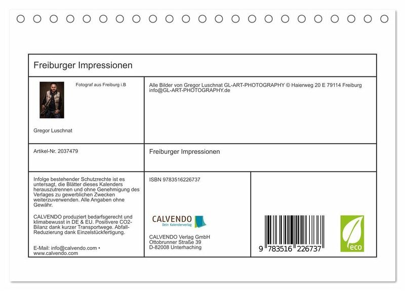 QUALITÄT - Hochwertiger Fotokalender mit 12 wunderschönen Motiven auf lichtbeständigem Bilderdruckpapier, robuste Spiralbindung.NACHHALTIG - deutliche Abfallreduzierung durch bedarfsgerechte Einzelstückfertigung, umweltfreundliches FSC-zertifiziertes Papier, Produktion in Deutschland, klimabewusste Logistik.PERFEKTES GESCHENK - Kalender für Freunde und Familie, für Kinder und Erwachsene, jung und alt, zu Weihnachten, Geburtstag oder zwischendurch.VIELFALT - Bildkalender in verschiedenen Formaten, z.B. DIN A5, DIN A4, DIN A3 sowie DIN A2. Ob Naturmotiv, Gemälde oder Fotos, ideal für ein persönliches Wohlfühlambiente.Freiburg im Breisgau von Autor(in): Gregor Luschnat