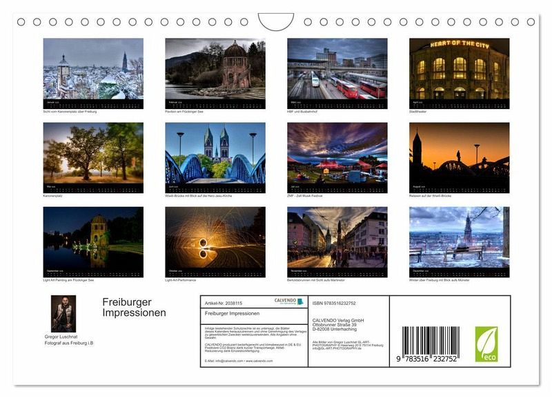QUALITÄT - Hochwertiger Fotokalender mit 12 wunderschönen Motiven auf lichtbeständigem Bilderdruckpapier, robuste Spiralbindung mit Aufhängebügel.NACHHALTIG - deutliche Abfallreduzierung durch bedarfsgerechte Einzelstückfertigung, umweltfreundliches FSC-zertifiziertes Papier, Produktion in Deutschland, klimabewusste Logistik.PERFEKTES GESCHENK - Kalender für Freunde und Familie, für Kinder und Erwachsene, jung und alt, zu Weihnachten, Geburtstag oder zwischendurch.VIELFALT - Bildkalender in verschiedenen Formaten, z.B. DIN A5, DIN A4, DIN A3 sowie DIN A2. Ob Naturmotiv, Gemälde oder Fotos, ideal für ein persönliches Wohlfühlambiente.Freiburg im Breisgau von Autor(in): Gregor Luschnat