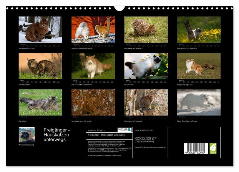 QUALITÄT - Hochwertiger Fotokalender mit 12 wunderschönen Motiven auf lichtbeständigem Bilderdruckpapier, robuste Spiralbindung mit Aufhängebügel.NACHHALTIG - deutliche Abfallreduzierung durch bedarfsgerechte Einzelstückfertigung, umweltfreundliches FSC-zertifiziertes Papier, Produktion in Deutschland, klimabewusste Logistik.PERFEKTES GESCHENK - Kalender für Freunde und Familie, für Kinder und Erwachsene, jung und alt, zu Weihnachten, Geburtstag oder zwischendurch.VIELFALT - Bildkalender in verschiedenen Formaten, z.B. DIN A5, DIN A4, DIN A3 sowie DIN A2. Ob Naturmotiv, Gemälde oder Fotos, ideal für ein persönliches Wohlfühlambiente.Hauskatzen in freier Natur von Autor(in):Werner Schmäing