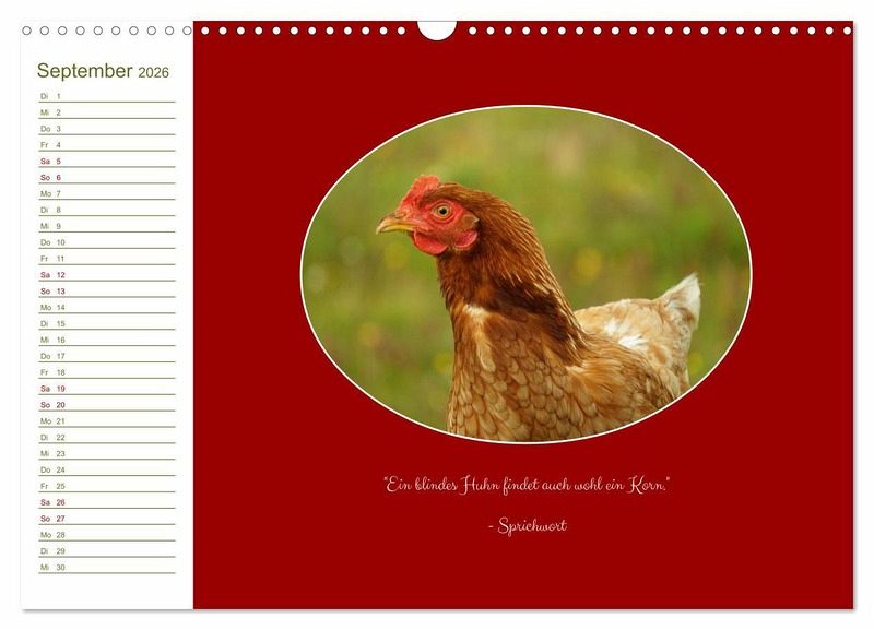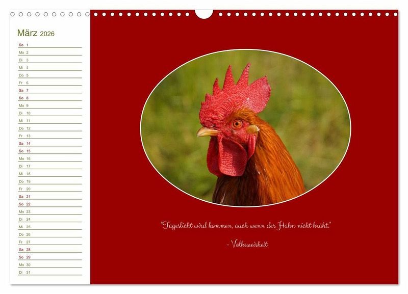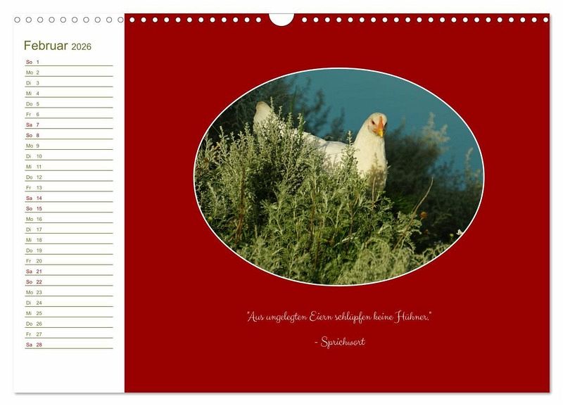 QUALITÄT - Hochwertiger Fotokalender mit 12 wunderschönen Motiven auf lichtbeständigem Bilderdruckpapier, robuste Spiralbindung mit Aufhängebügel.NACHHALTIG - deutliche Abfallreduzierung durch bedarfsgerechte Einzelstückfertigung, umweltfreundliches FSC-zertifiziertes Papier, Produktion in Deutschland, klimabewusste Logistik.PERFEKTES GESCHENK - Kalender für Freunde und Familie, für Kinder und Erwachsene, jung und alt, zu Weihnachten, Geburtstag oder zwischendurch.VIELFALT - Bildkalender in verschiedenen Formaten, z.B. DIN A5, DIN A4, DIN A3 sowie DIN A2. Ob Naturmotiv, Gemälde oder Fotos, ideal für ein persönliches Wohlfühlambiente.Unterschiedliche Hühner-Rassen in freier, ländlicher Idylle. von Autor(in): White_hart_photo_art