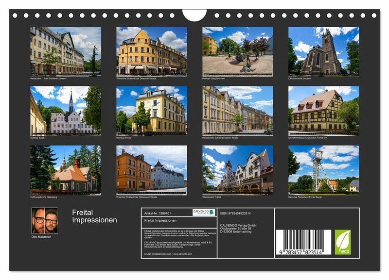 Freital liegt südwestlich von Dresden im Döhlener Becken. Die Stadt entstand am 1. Oktober 1921 durch die Vereinigung der Gemeinden Deuben, Döhlen und Potschappel sowie 12 weiteren Stadtteilen. Der Fotograf Dirk Meutzner zeigt mit seinem wunderschönen Kalender, was diese Stadt zu bieten hat.