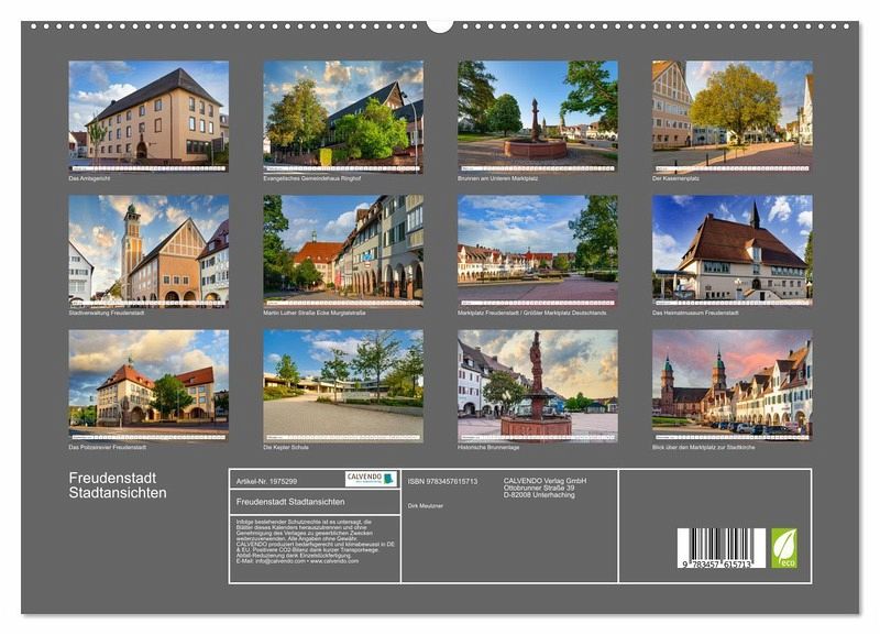 Der Fotograf Dirk Meutzner entführt Sie in diesem einmalig schönen Kalender in den Schwarzwald, nach Freudenstadt. Sie ist eine Große Kreisstadt im Regierungsbezirk Karlsruhe in Baden-Württemberg.