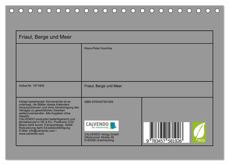 QUALITÄT - Hochwertiger Fotokalender mit 12 wunderschönen Motiven auf lichtbeständigem Bilderdruckpapier, robuste Spiralbindung.NACHHALTIG - deutliche Abfallreduzierung durch bedarfsgerechte Einzelstückfertigung, umweltfreundliches FSC-zertifiziertes Papier, Produktion in Deutschland, klimabewusste Logistik.PERFEKTES GESCHENK - Kalender für Freunde und Familie, für Kinder und Erwachsene, jung und alt, zu Weihnachten, Geburtstag oder zwischendurch.VIELFALT - Bildkalender in verschiedenen Formaten, z.B. DIN A5, DIN A4, DIN A3 sowie DIN A2. Ob Naturmotiv, Gemälde oder Fotos, ideal für ein persönliches Wohlfühlambiente.Ein fotografischer Streifzug durch eine beliebte Ferienregion von Autor(in): Peter Huschka