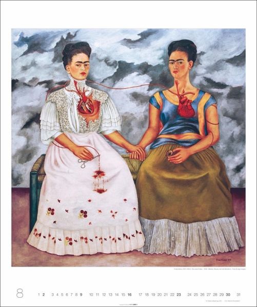 - Leidenschaftlich und authentisch: Kalender im Großformat mit berühmten und weniger bekannten Kunstwerken Frida Kahlos- Das ideale Geschenk für Kunstliebhaber:innen und Fans von Frida Kahlo: Kunstkalender in hervorragender Druckqualität - Ikonische Motive und surrealistische Malerei in einem Monatskalender, der die Farben und Stimmungen Mexikos an jede Wand zaubert- Der Frida-Kahlo-Kalender im Format 46 x 55, der ihren Bildern den nötigen Platz zum Wirken gibt- Geschenkideen für Kunst-Fans und Ästhet:innen: Kalender von Weingarten aus dem Athesia Kalenderverlag