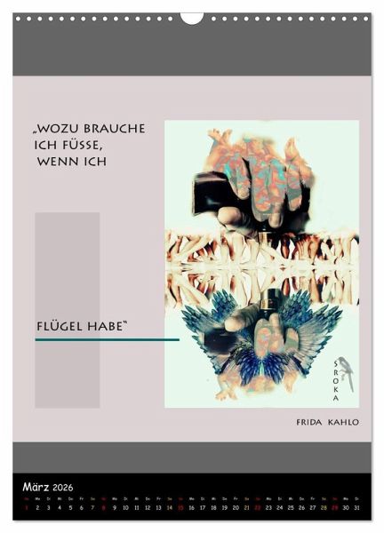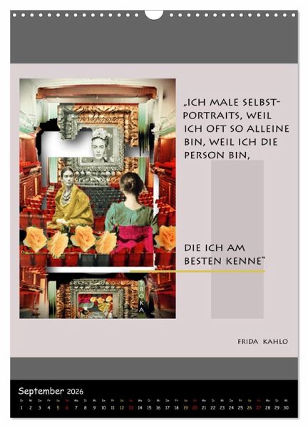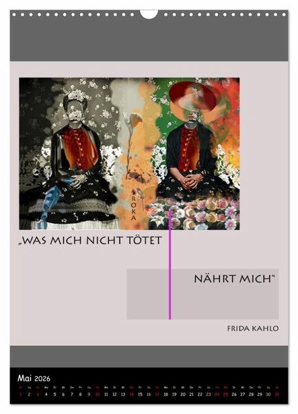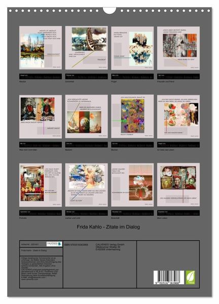 QUALITÄT - Hochwertiger Fotokalender mit 12 wunderschönen Motiven auf lichtbeständigem Bilderdruckpapier, robuste Spiralbindung mit Aufhängebügel.NACHHALTIG - deutliche Abfallreduzierung durch bedarfsgerechte Einzelstückfertigung, umweltfreundliches FSC-zertifiziertes Papier, Produktion in Deutschland, klimabewusste Logistik.PERFEKTES GESCHENK - Kalender für Freunde und Familie, für Kinder und Erwachsene, jung und alt, zu Weihnachten, Geburtstag oder zwischendurch.VIELFALT - Bildkalender in verschiedenen Formaten, z.B. DIN A5, DIN A4, DIN A3 sowie DIN A2. Ob Naturmotiv, Gemälde oder Fotos, ideal für ein persönliches Wohlfühlambiente.Zitate im Dialog aus dem Leben einer außergewöhnlichen Malerin von Autor(in): Andrea E. Sroka