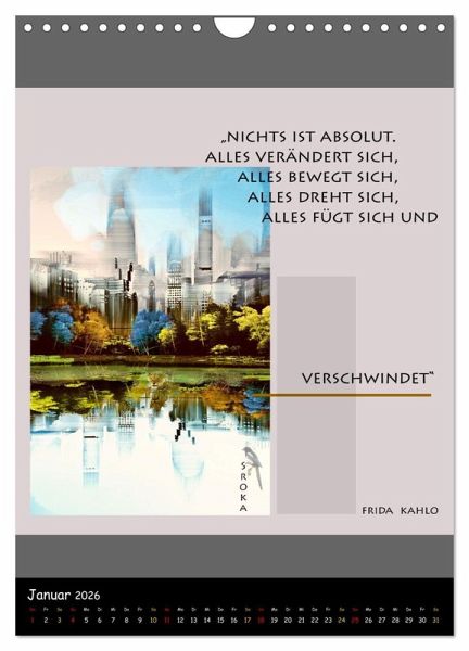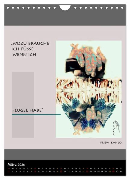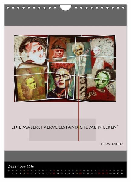 QUALITÄT - Hochwertiger Fotokalender mit 12 wunderschönen Motiven auf lichtbeständigem Bilderdruckpapier, robuste Spiralbindung mit Aufhängebügel.NACHHALTIG - deutliche Abfallreduzierung durch bedarfsgerechte Einzelstückfertigung, umweltfreundliches FSC-zertifiziertes Papier, Produktion in Deutschland, klimabewusste Logistik.PERFEKTES GESCHENK - Kalender für Freunde und Familie, für Kinder und Erwachsene, jung und alt, zu Weihnachten, Geburtstag oder zwischendurch.VIELFALT - Bildkalender in verschiedenen Formaten, z.B. DIN A5, DIN A4, DIN A3 sowie DIN A2. Ob Naturmotiv, Gemälde oder Fotos, ideal für ein persönliches Wohlfühlambiente.Zitate im Dialog aus dem Leben einer außergewöhnlichen Malerin von Autor(in): Andrea E. Sroka