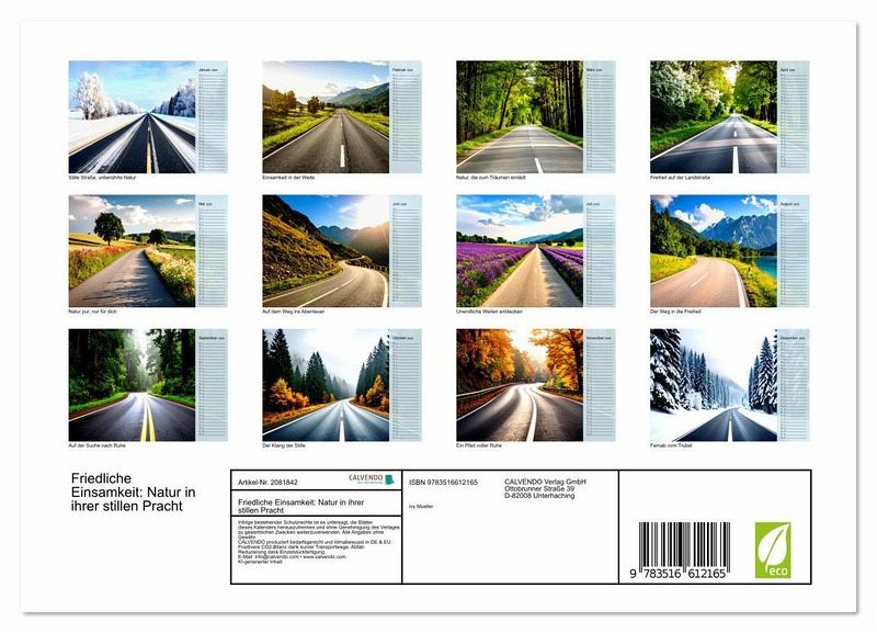 Entdecken Sie die Schönheit der Ruhe mit unserem Kalender. Dieser Kalender bringt Ihnen jeden Monat atemberaubende Ki-Aufnahmen unberührter Landschaften, die die stille Kraft und die friedliche Atmosphäre der Natur einfangen. Perfekt als Geschenk für Naturliebhaber, Momente der Entspannung oder um das eigene Zuhause mit einer Oase der Ruhe zu verschönern. Verschenken Sie eine Auszeit vom Alltag und lassen Sie sich von der stillen Pracht der Natur inspirieren!