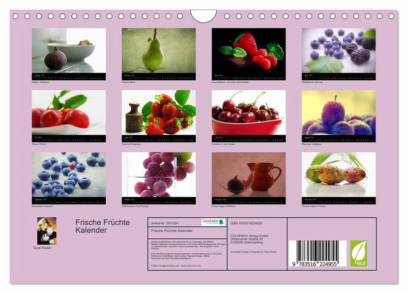 QUALITÄT - Hochwertiger Fotokalender mit 12 wunderschönen Motiven auf lichtbeständigem Bilderdruckpapier, robuste Spiralbindung mit Aufhängebügel.NACHHALTIG - deutliche Abfallreduzierung durch bedarfsgerechte Einzelstückfertigung, umweltfreundliches FSC-zertifiziertes Papier, Produktion in Deutschland, klimabewusste Logistik.PERFEKTES GESCHENK - Kalender für Freunde und Familie, für Kinder und Erwachsene, jung und alt, zu Weihnachten, Geburtstag oder zwischendurch.VIELFALT - Bildkalender in verschiedenen Formaten, z.B. DIN A5, DIN A4, DIN A3 sowie DIN A2. Ob Naturmotiv, Gemälde oder Fotos, ideal für ein persönliches Wohlfühlambiente.Ein toller Küchenkalender aus frischen Früchten. Ob exotische oder heimische Früchte, alles liebevoll arrangiert und appetitlich anzusehen. von Autor(in): Tanja Riedel